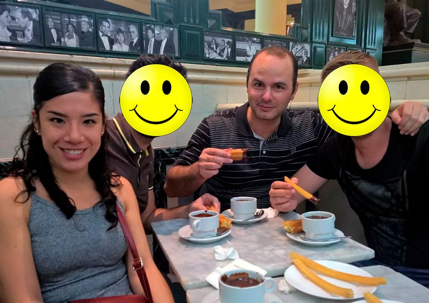 ¿Destino? ¿casualidad? creemos que los tiempos de Dios son perfectos. Allí dentro, Rubén y Rebe se encontraron por primera vez y el flechazo fue instantáneo. Tímidamente Rubén ideó un plan exitoso para hablar con Rebe, y al final ambos grupos terminaron la velada con una tradición madrileña, desayunar churros con chocolate a las 5:00 am en la famosa chocolatería San Ginés.